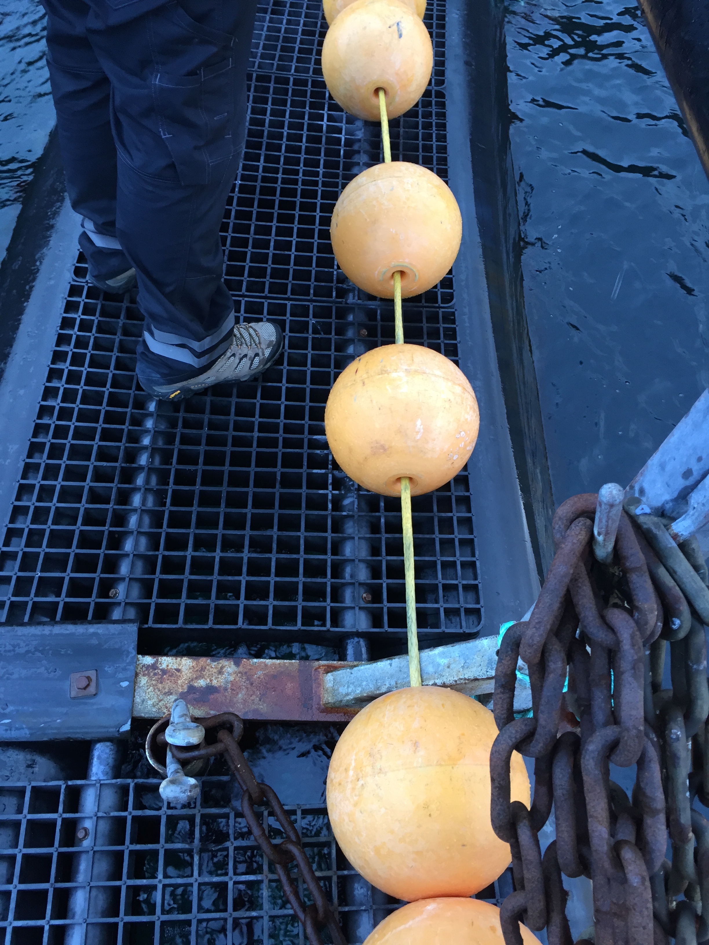 Igjen blir jollen brukt for å se hva som var galt. Det blir ikke lagt merke til noe spesielt, annet enn at det er mye notfolder som er samlet der det henger. Det blir også lagt merke til at det henger ved en av plassene på perlebandet hvor det er fylt på med flytere av kork mellom trålkulene.