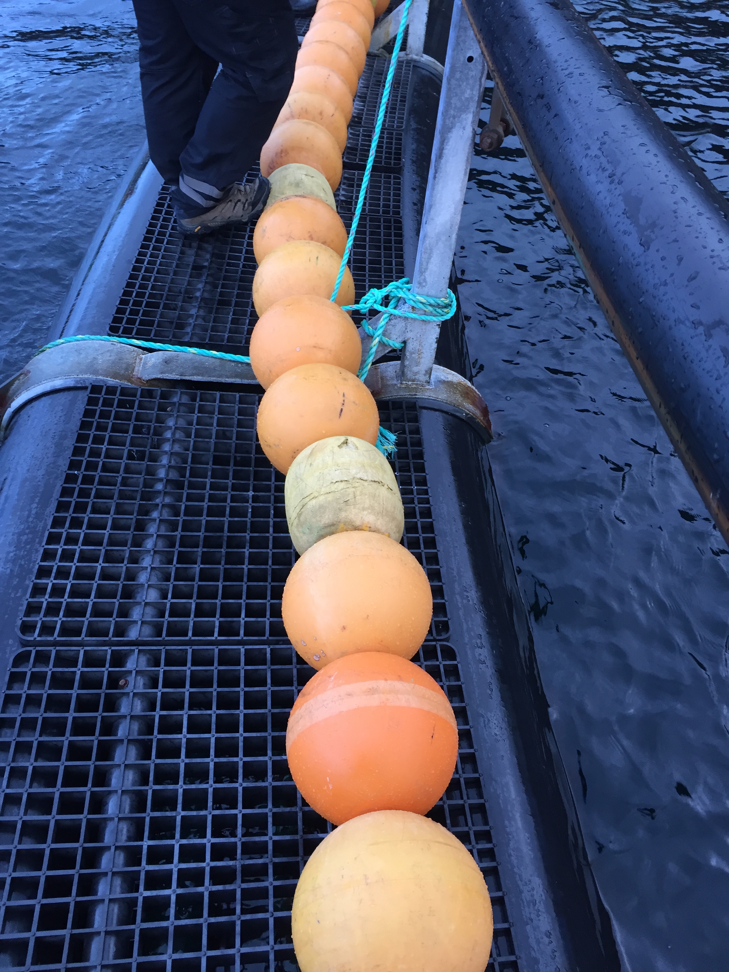 Da behandlingen av fisken er ferdig, blir perlebandet fjernet og notspissen blir sluppet ned. Senere samme dag blir det utført en rutinemessig dykkerinspeksjon i den aktuelle noten og flengen blir oppdaget. En sikringsnot blir brukt til å dekke flengen for å hindre ytterligere rømming.