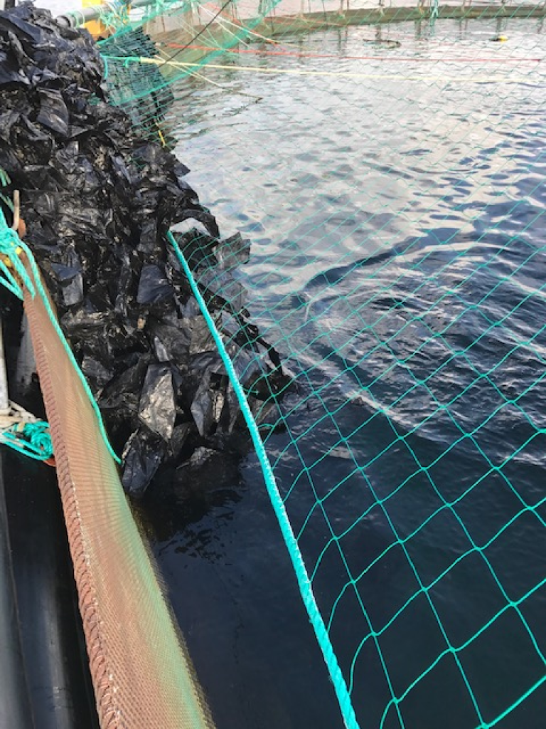 Ei anna sentral erfaring, som fleire av desse tilsynssakene viser, er at oppdrettaren må leggje til rette for at det er råd å inspisere heile nota utan å risikere å setje seg fast og utan at ekstrautstyr reduserer framkomst og sikt langs notveggen (figur 5). Når ei not blir spylt for å fjerne groe kan det ikkje henge ekstrautstyr som reduserer framkomst langs notveggen. Dette bør ha like høgt fokus når ei not blir inspisert. Notinspektør må ha dialog med oppdrettar dersom ein ikkje får inspisert heile nota.