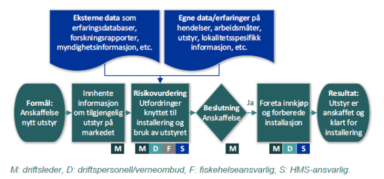 Risikoanalyser er en samling metoder for å identifisere farer og uønskede hendelser, analysere og evaluere risiko, og identifisere tiltak som kan fjerne eller redusere risikoen. Som kunnskapsunderlag for risikovurderingen benyttes eksterne informasjonskilder slik som «Risikorapport norsk fiskeoppdrett» samt oversikt over egne erfaringer hvor erfaringer med tidligere anskaffelser er dokumentert.