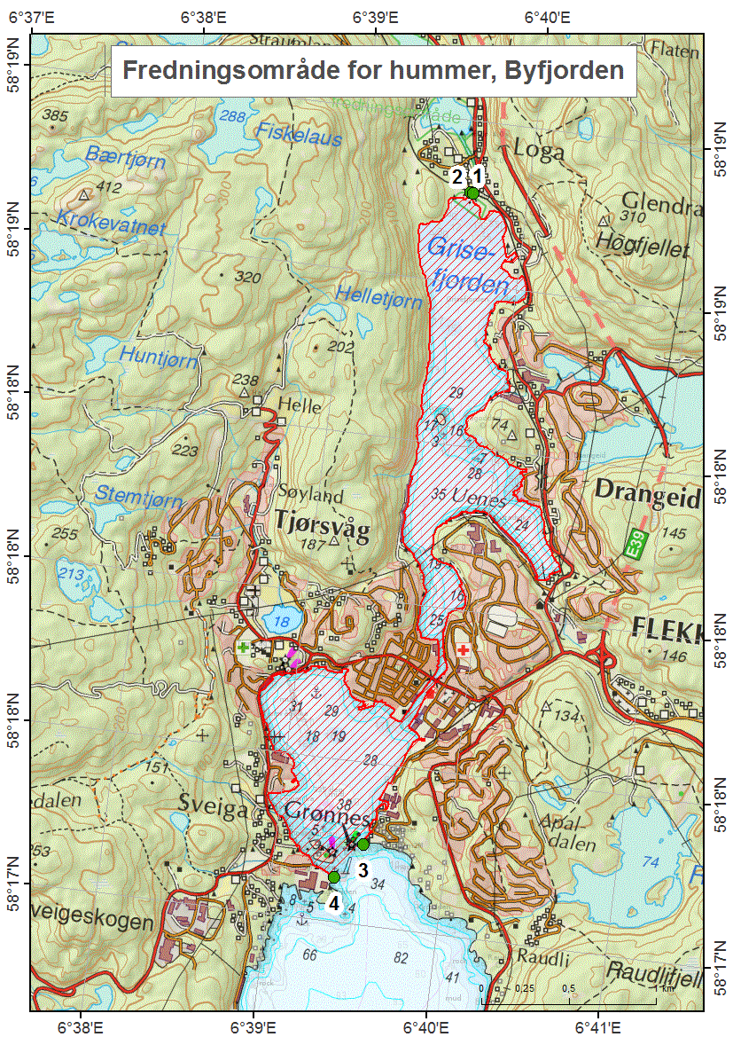| 58° 24' 07.20" N 58° 24' 16.20'' N 58° 24' 16.20'' N 58° 23' 34.80" N 58° 23' 06.00" N 58° 23' 42.00" N | 5° 57' 43.20" Ø | 58° 24.120’ N 58° 24.270’ N 58° 24.270’ N 58° 23.580’ N 58° 23.100’ N 58° 23.700’ N | 5° 57.720’ Ø |