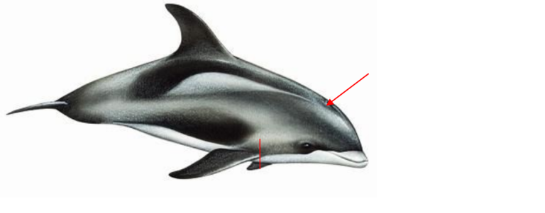 For grindhval rettes skuddet i samme vinkel fra omtrent 15-20 cm bak blåsehullet, se figur 8.